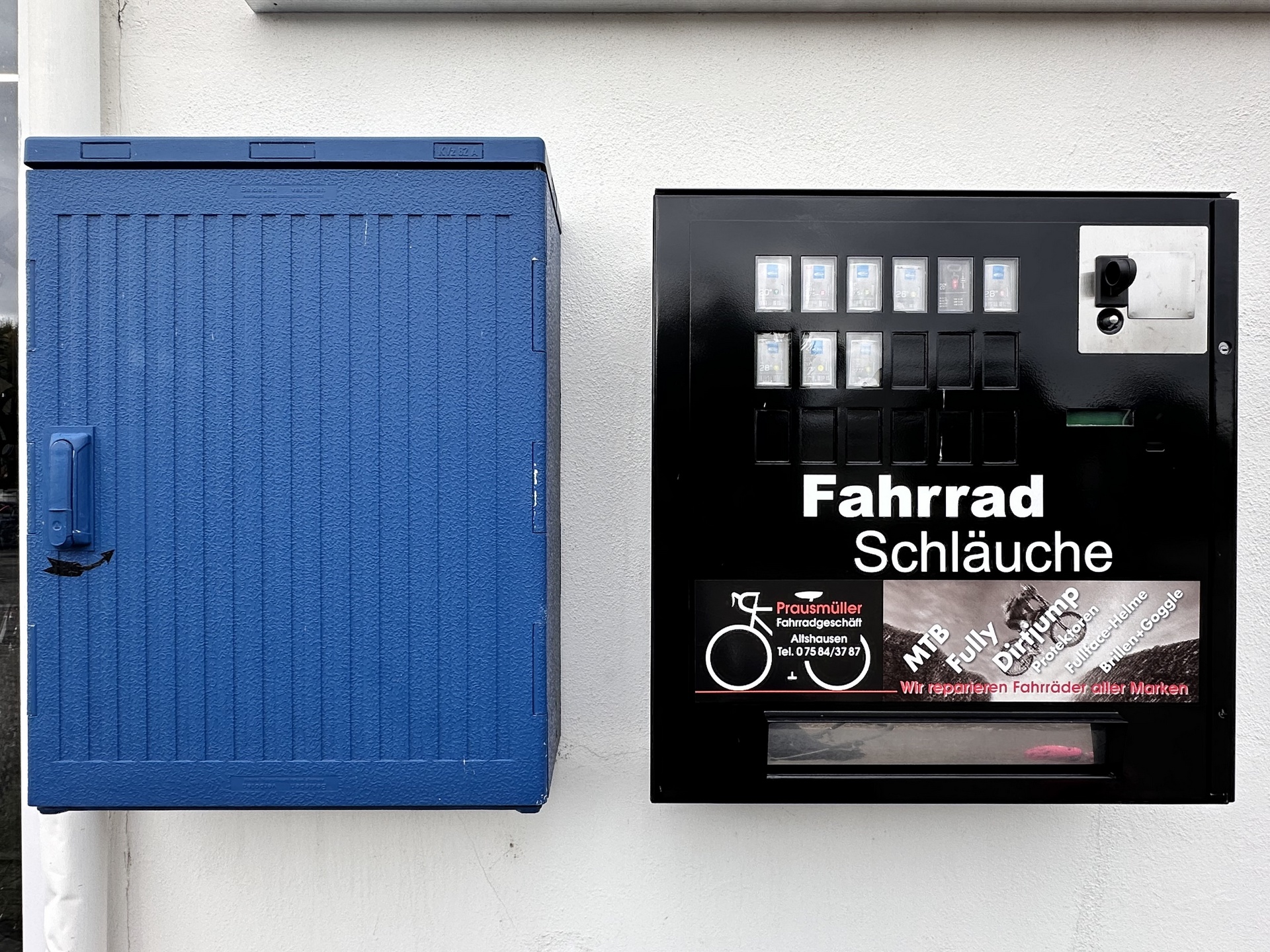 Sie haben eine Panne nach Ladenschluss? Kein Problem! Bedienen Sie sich gerne an unserer Reparaturbox. In dieser finden Sie diverse Werkzeuge für kleinere Reparaturen! Und wer hat schon gerne Plattfuß!? An unserem Schlauchomat können Sie sich rund um die Uhr bedienen.